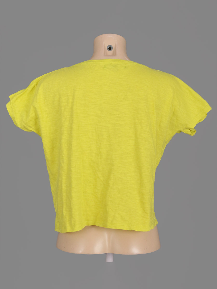 Есть мелкие катышки, ткань потускнела, местами вытянулась.