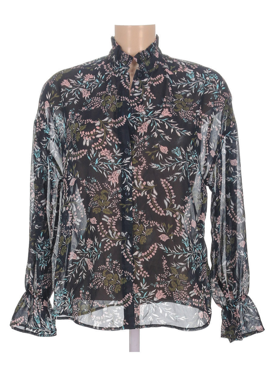 Маркировка на изделии 36. Размер указан на основании замеров. Замер рукава указан от горловины. На воротниковой части изделия подрезан и не обработан край изделия.