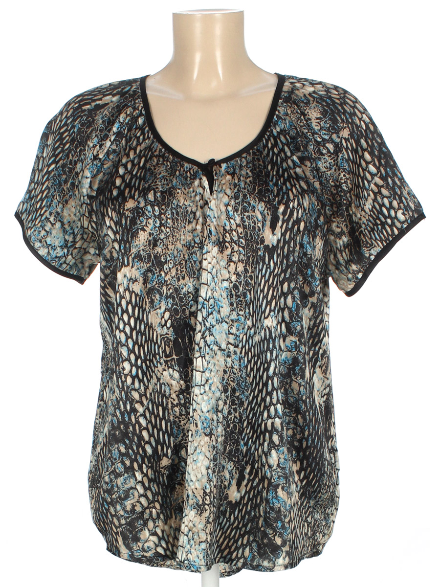 Маркировка на изделии отсутствует. Размер указан на основании замеров (46-48). Есть затяжки.