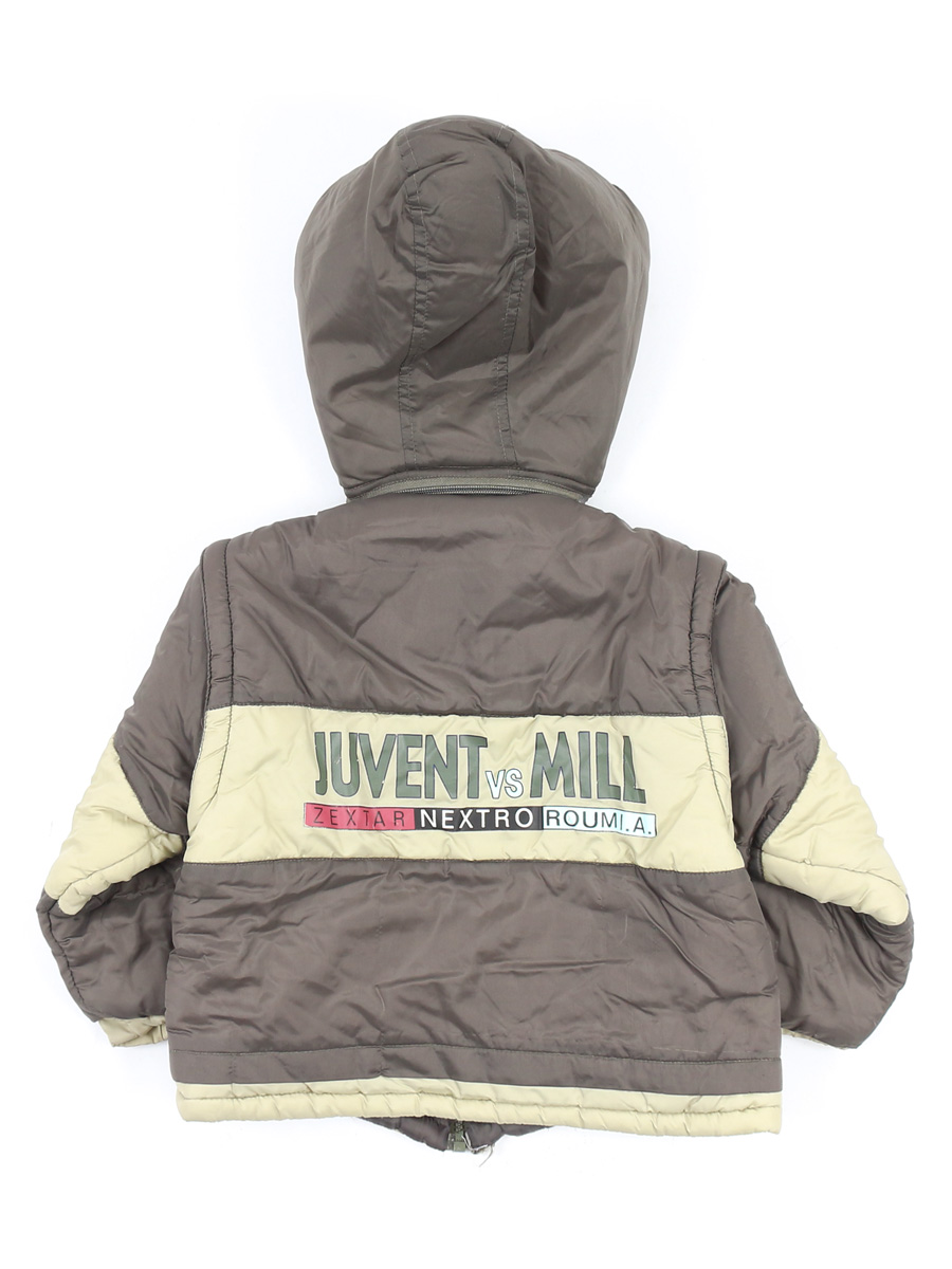 Рукава отстегиваются, можно носить как жилет. Есть затяжки, потертости материала, по низу изделия дырочка, ткань потускнела.