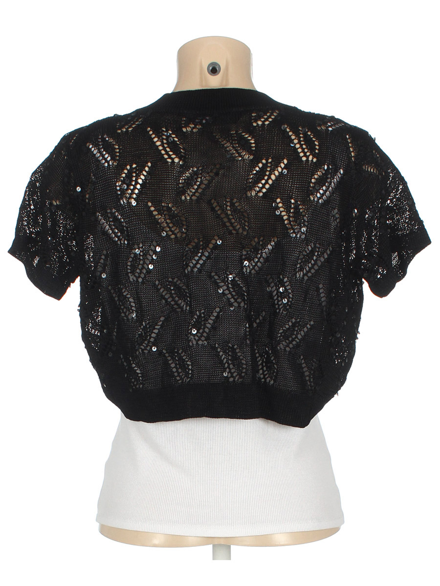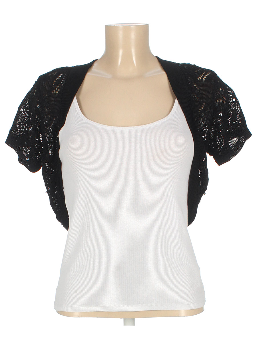Маркировка на изделии отсутствует. Размер указан на основании замеров (42-44). Майка не в комплекте. Есть затяжки.