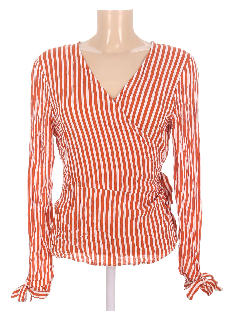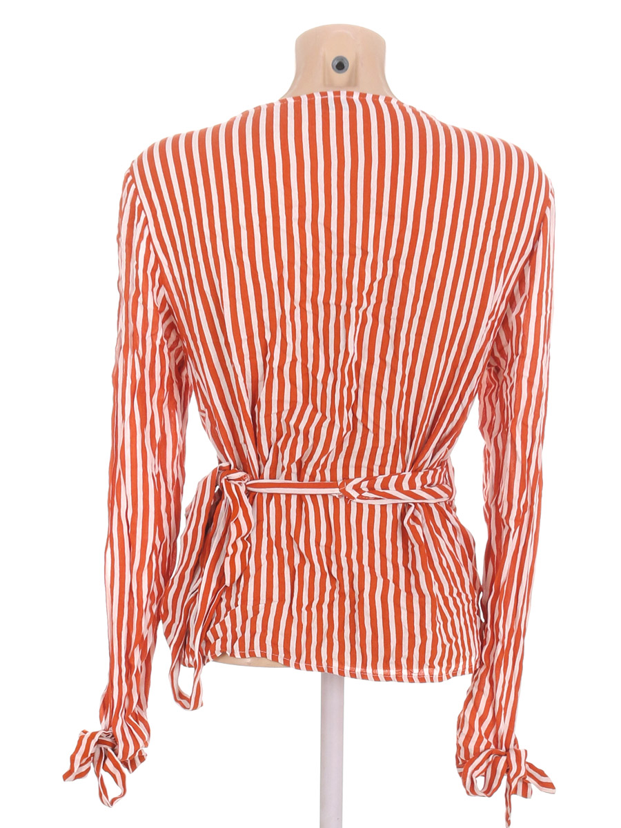 Маркировка на изделии отсутствует. Размер указан на основании замеров (42-44). Белый/коричневый. Есть затяжки, отрывается пояс (распускается строчка по шву).