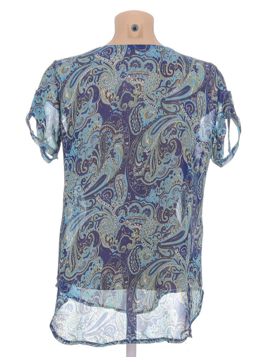 Маркировка на изделии отсутствует. Размер указан на основании замеров (44-46). Есть затяжки, ткань потускнела. Возможно не фабричный пошив.