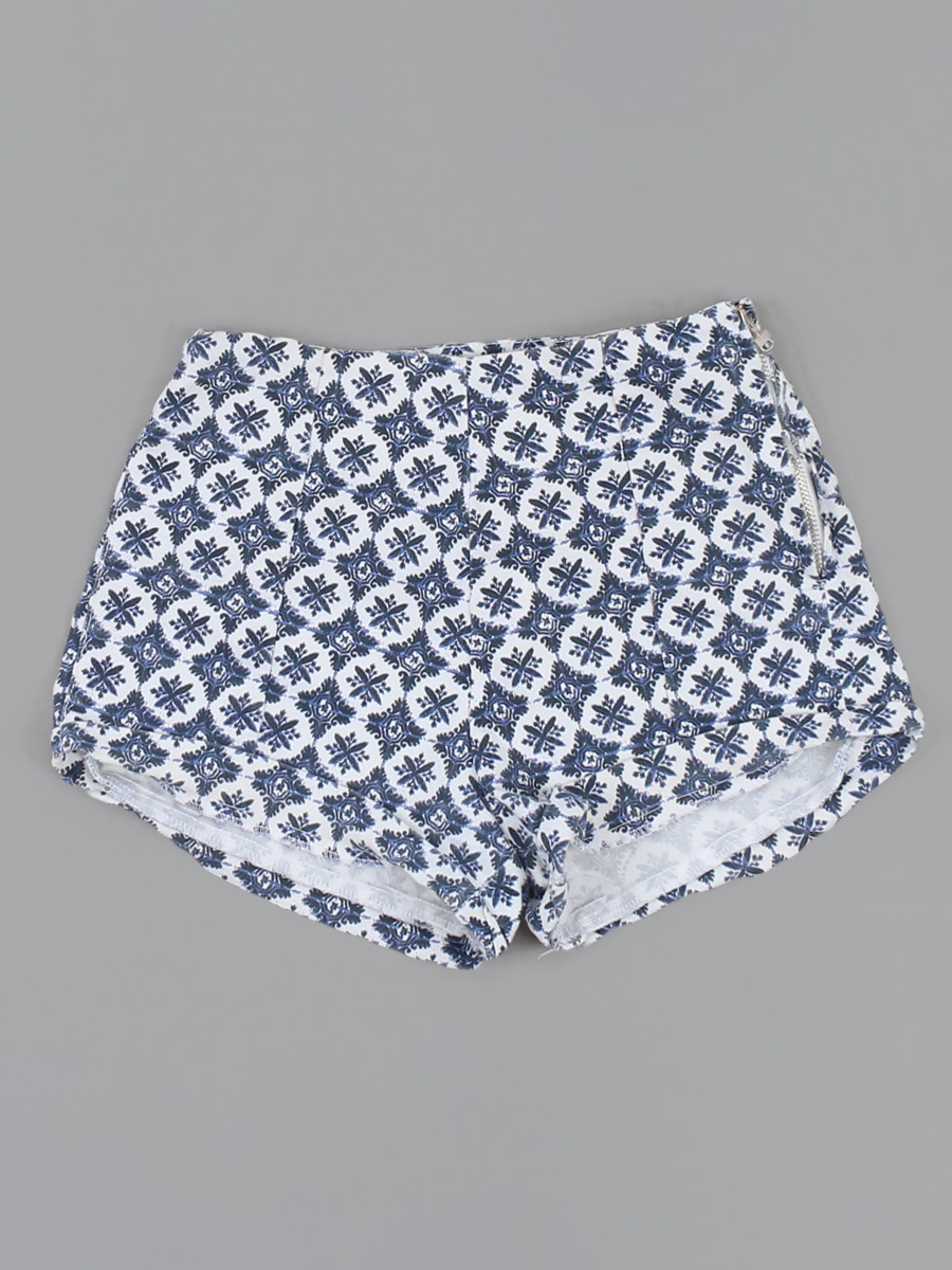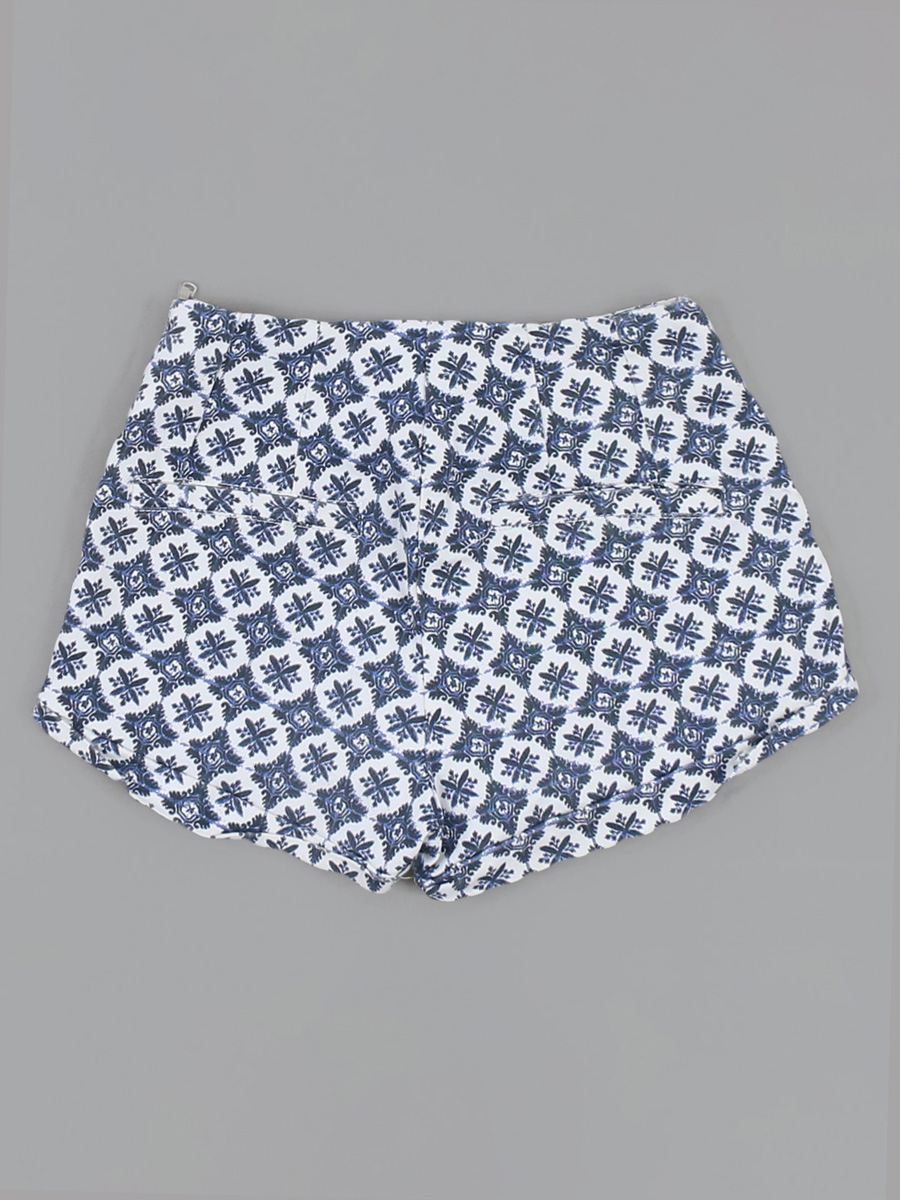 Белый-синий. Маркировка EUR 32. Есть мелкие катышки, небольшие загрязнения, ткань немного потускнела, местами незначительно вытянулась.