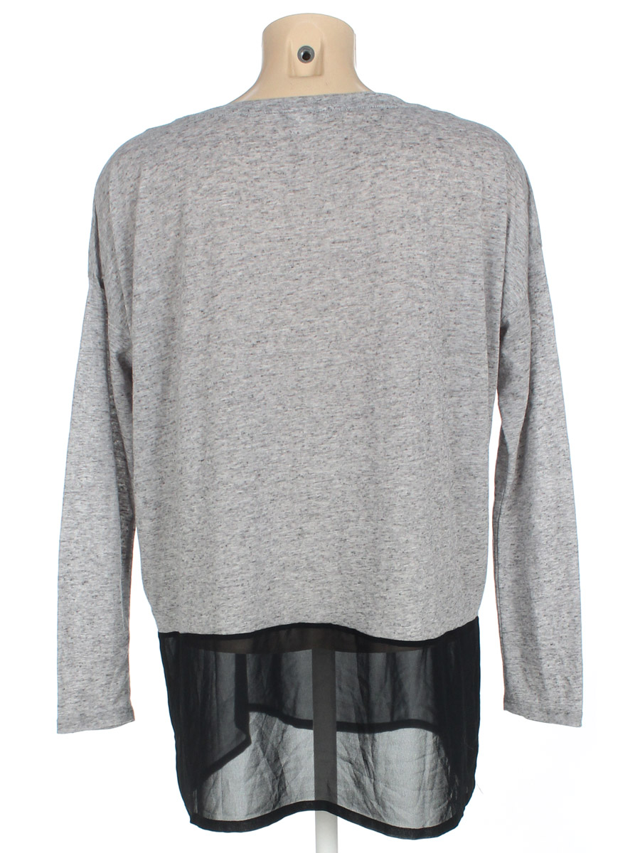 Есть катышки, затяжки, ткань потускнела, местами немного вытянулась.