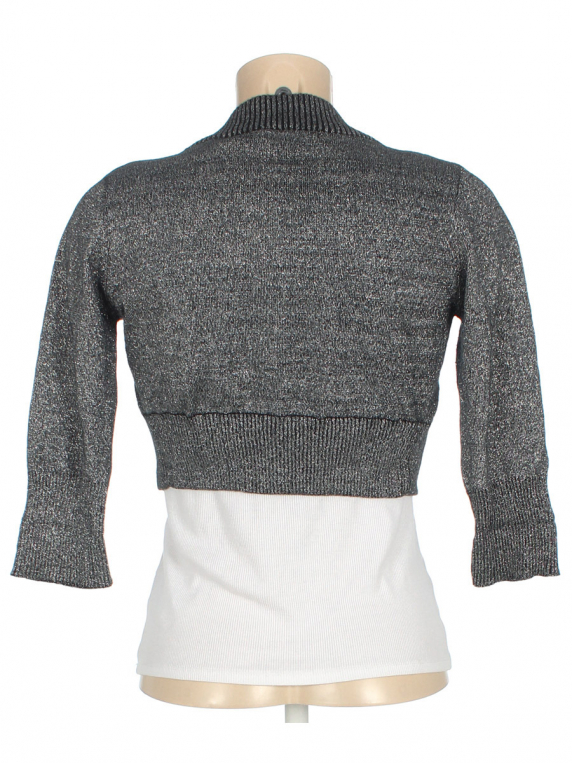 Есть немного катышек. Отсутствует пуговица. Майка в комплект не входит.