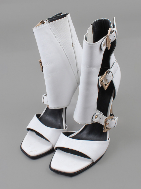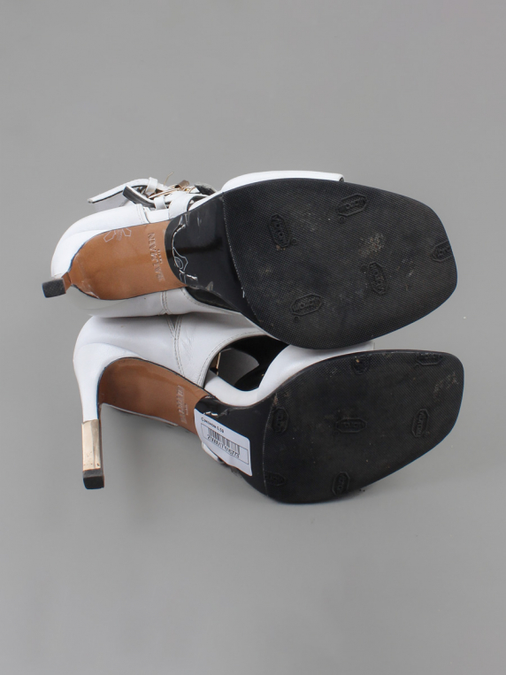 Есть небольшие загрязнения. Немного повреждён материал на каблуке.