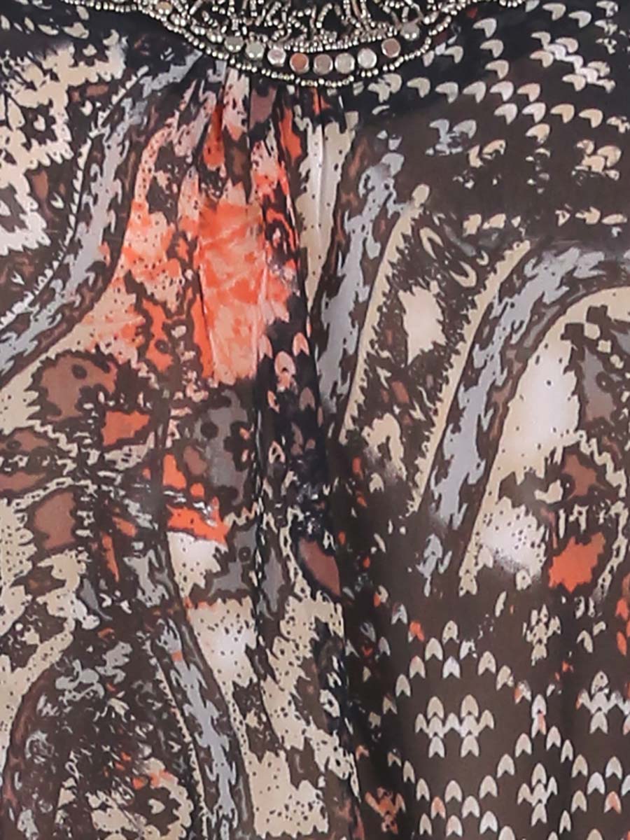 Есть немного затяжек. Немного распускается вышивка бисером на груди. Длина рукава указана от горловины.