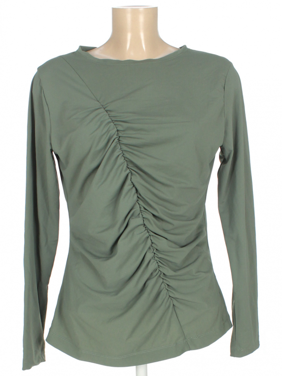 Маркировка на изделии отсутствует. Размер указан на основании замеров. По краю и на рукавах частично распускается шов.