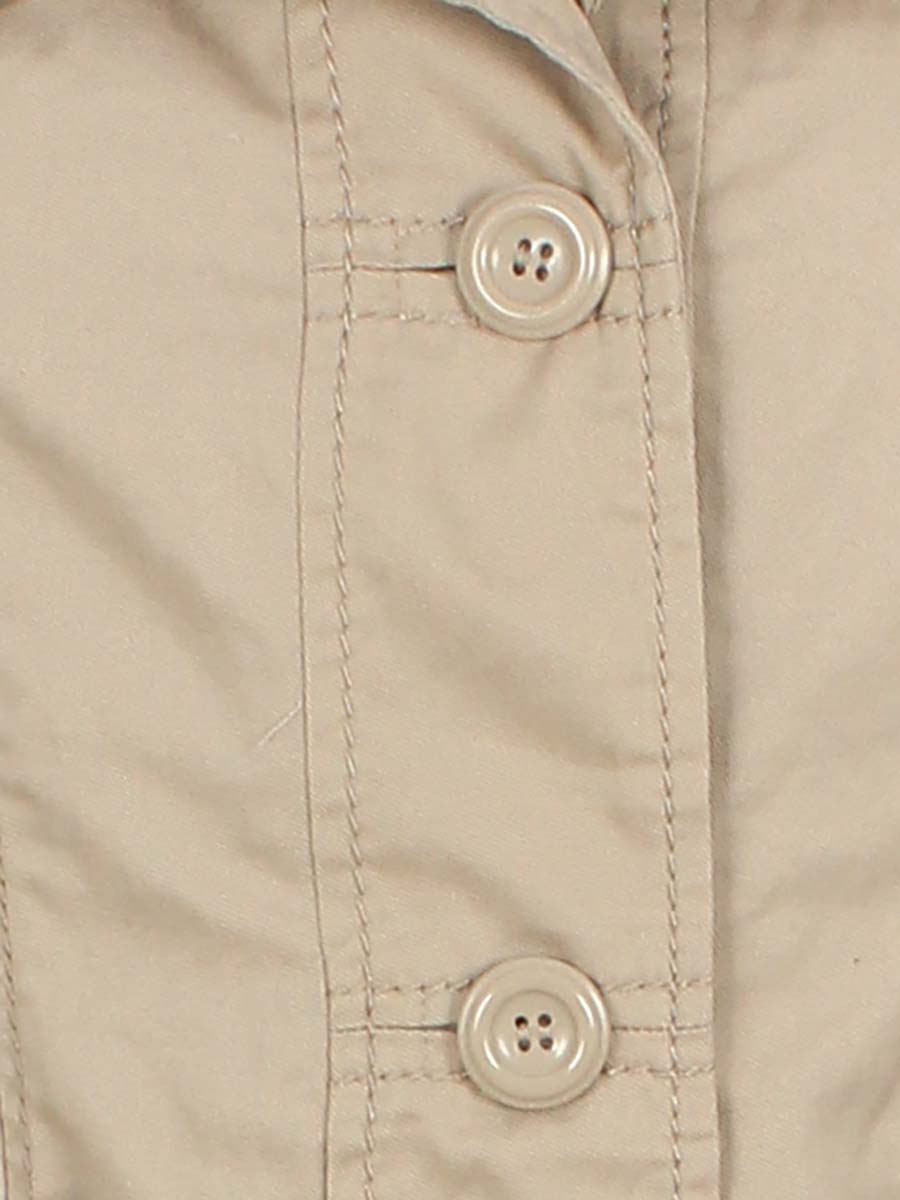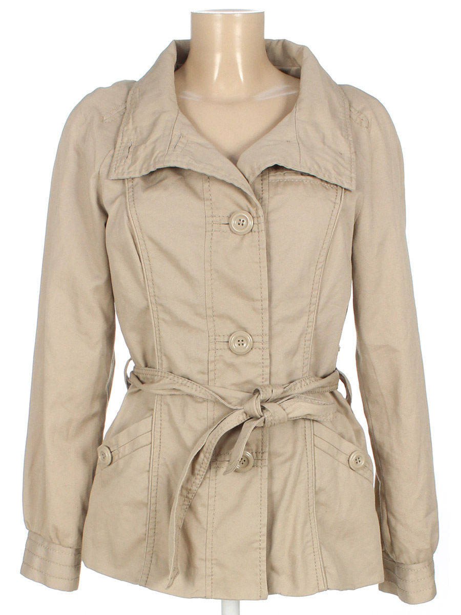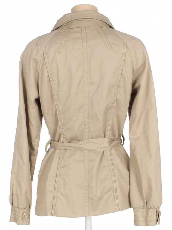 Есть небольшие загрязнения (возможно отстираются). На теплую осень\весну. Немного лоснится ткань. Торчат ниточки.