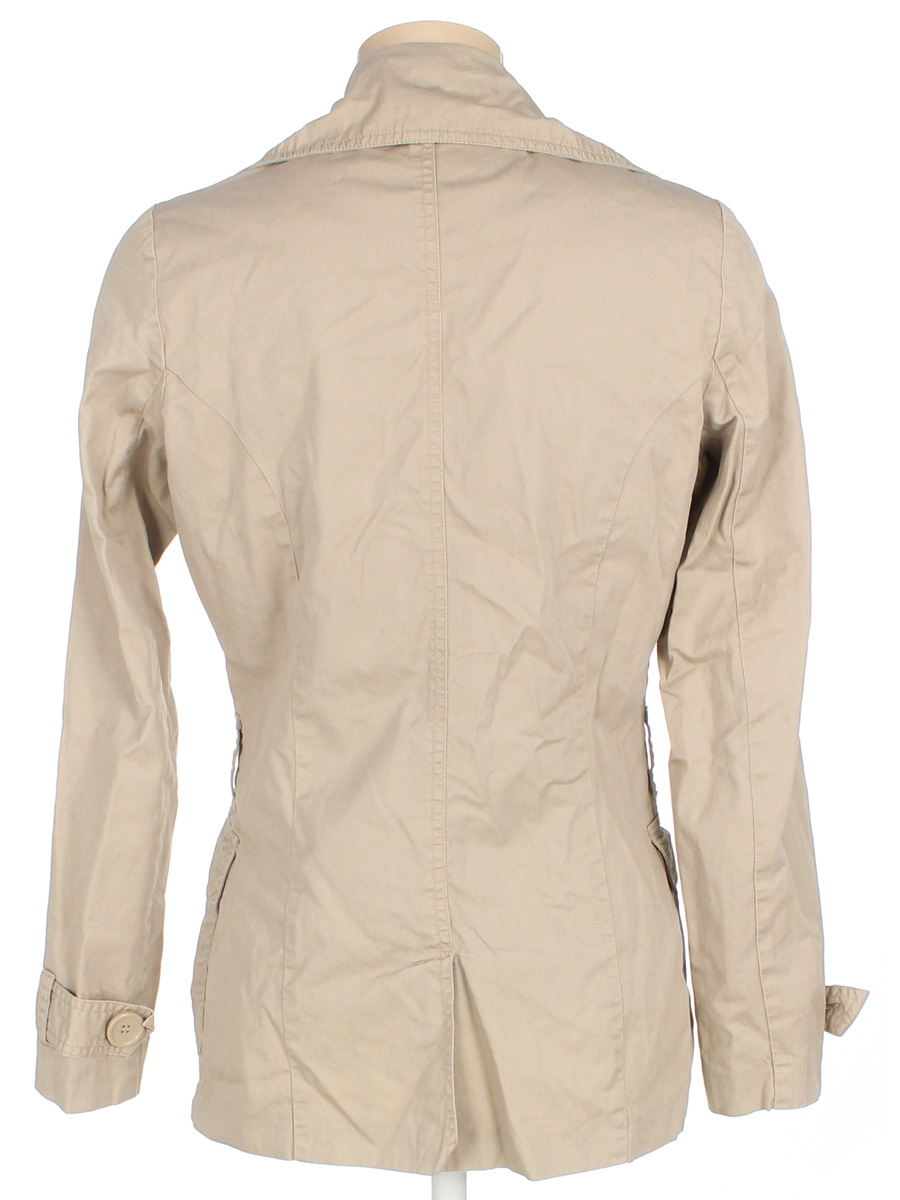 Немного вытянута ткань по шву на подкладочной ткани изнутри. Есть пятнышки спереди. Размер указан на основании замеров. Размер на маркировке 34.