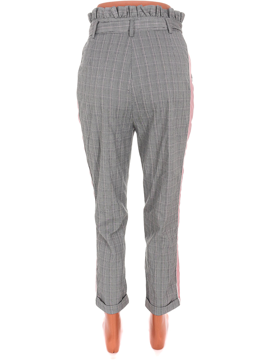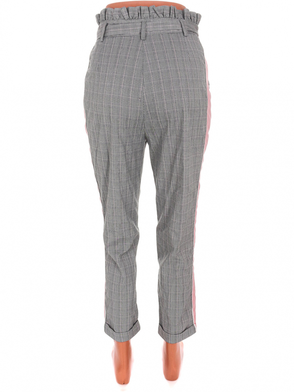 Нет пуговицы на талии ( зашитая дырочка на её месте ).