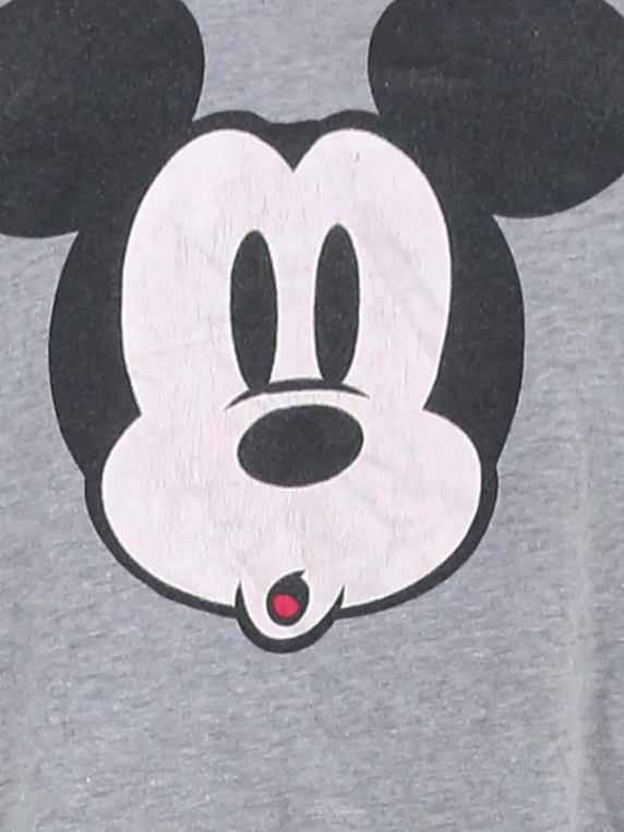 Ткань немного вытянулась и выцвела, катышки. Краска рисунка потрескалась.