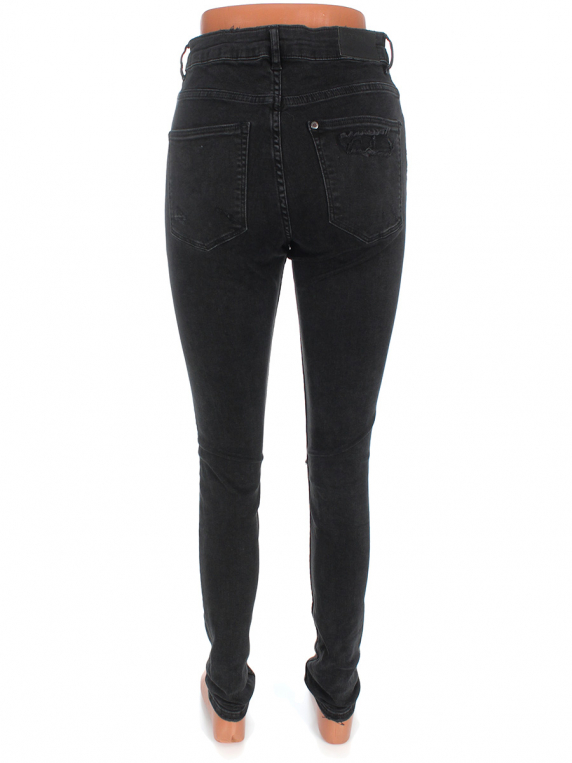 Есть зацепка. Ткань немного вытянулась. У заднего кармана есть пятнышко (возможно отстирается). Ткань немного выцвела.