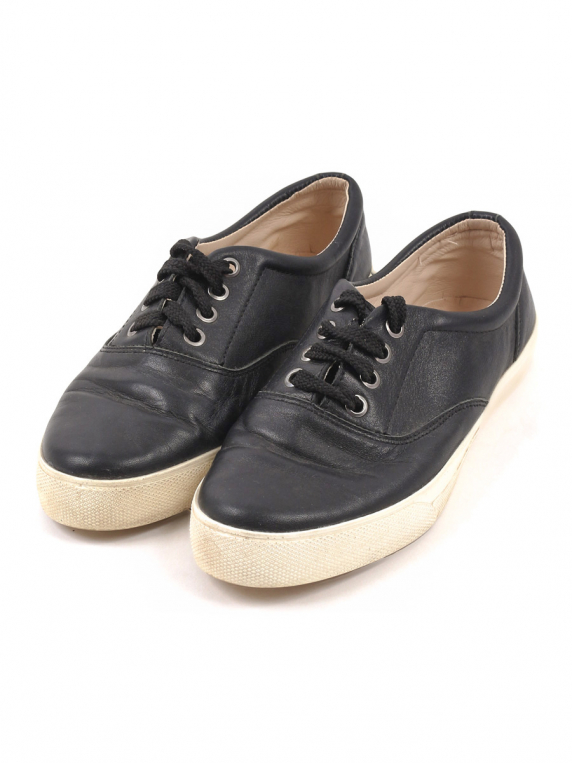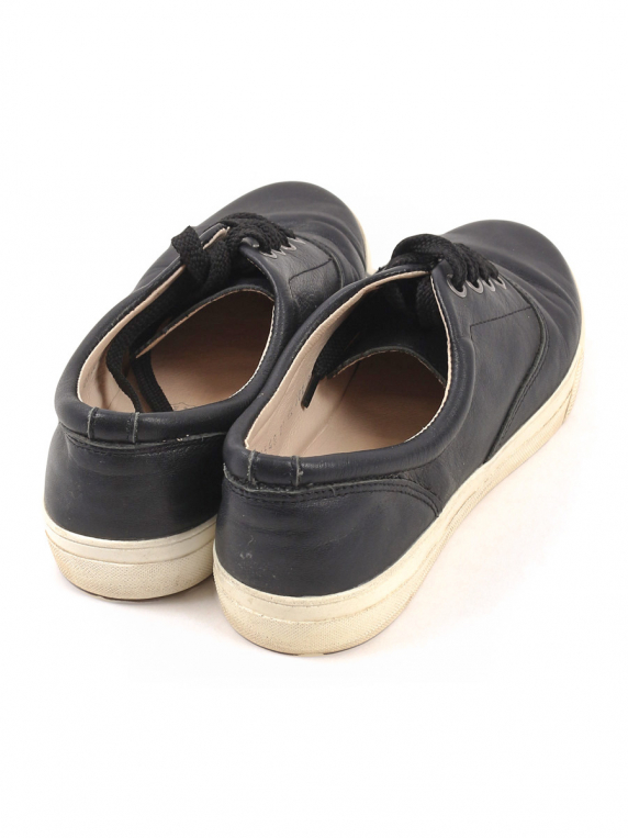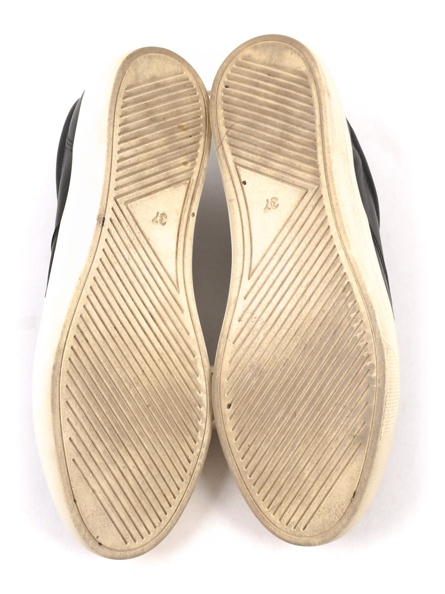 Есть небольшой износ подошвы. Замятия на материале в передней части. На изделии есть знак кожа.