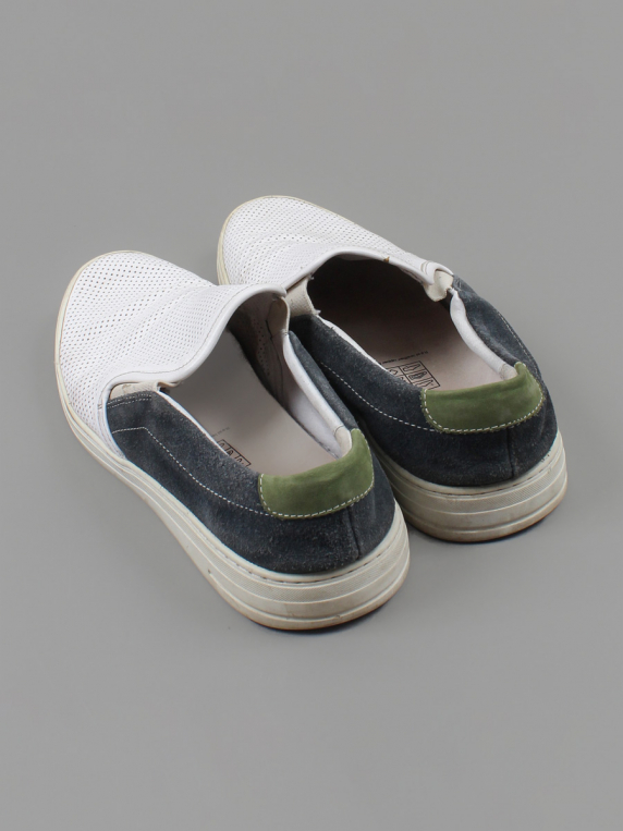 Износ подошвы. Есть заломы. Есть поверхностные загрязнения. Есть потертости материала. На изделие есть знак кожа.