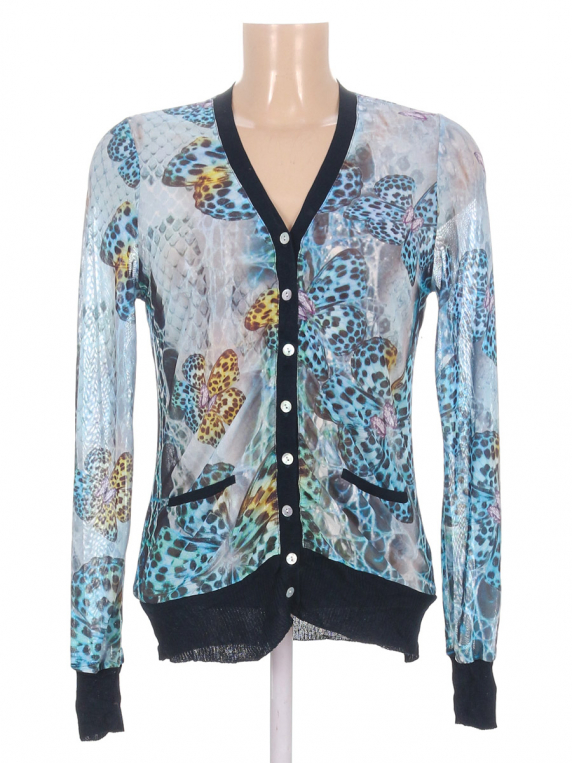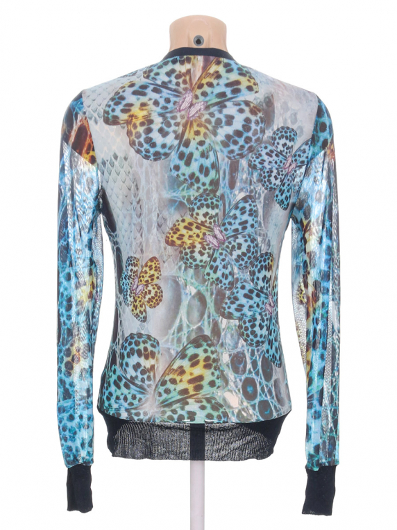 Ткань немного вытянулась. Немного торчат ниточки в области подмышек. На рукаве местами ниточки оранжевого цвета. Маркировка на изделии отсутствует. Размер указан на основании замеров.
