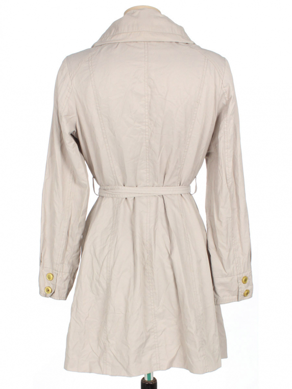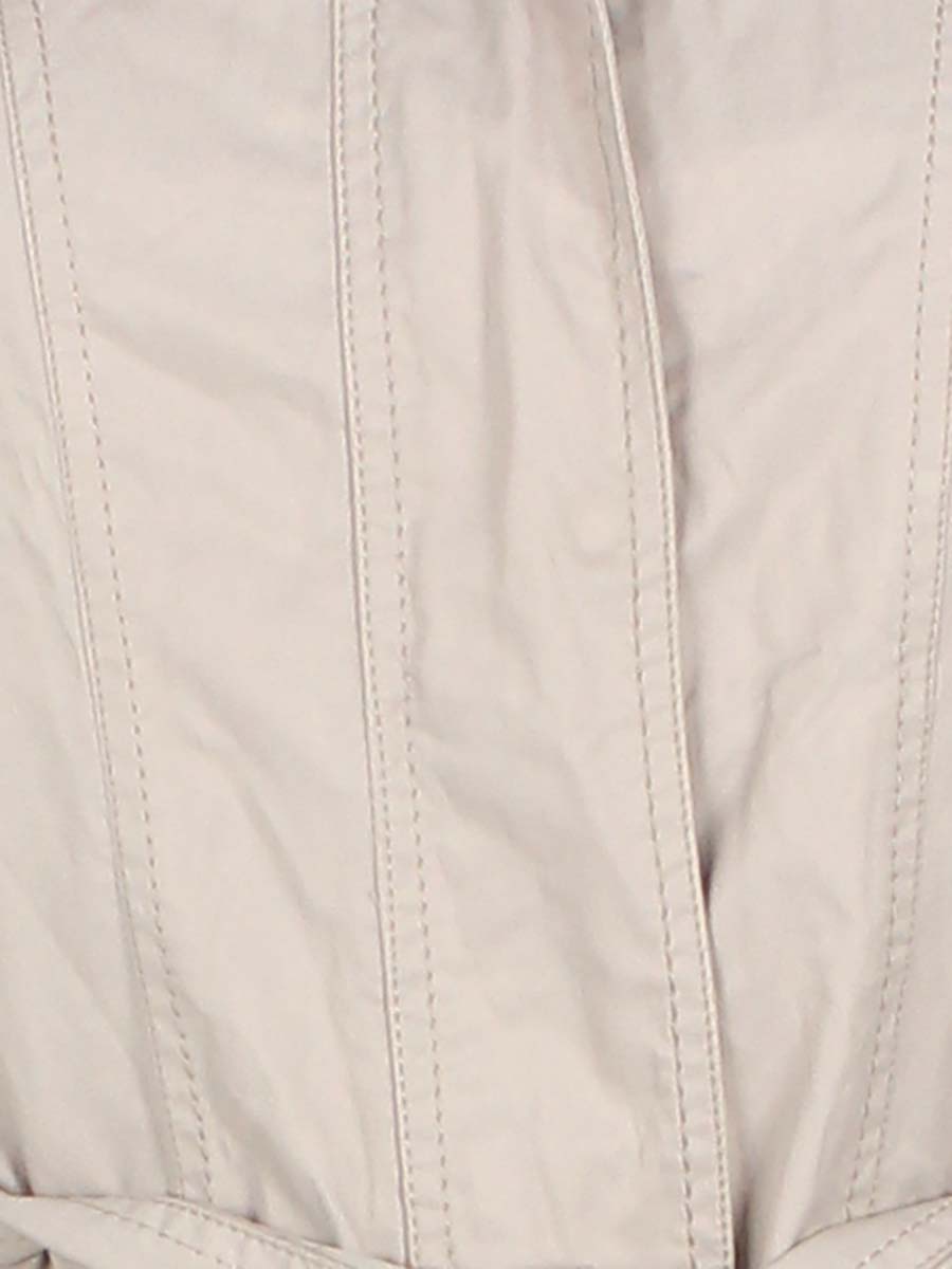 Есть небольшие загрязнения (возможно отстираются). Местами лоснится ткань. Капюшон убирается в воротник. На фурнитуре немного стерлось покрытие. На спине у декоративного шва есть заводской дефект (виде маленьких дырочек от иголки).