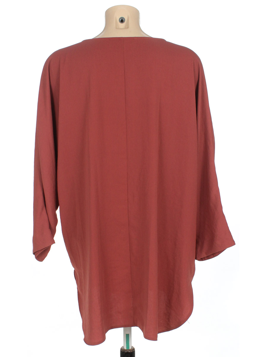 Замер рукава указан от горловины. Спереди есть маленькое пятнышко, мелкие затяжки, нет пояса. Немного потускнел цвет ткани.