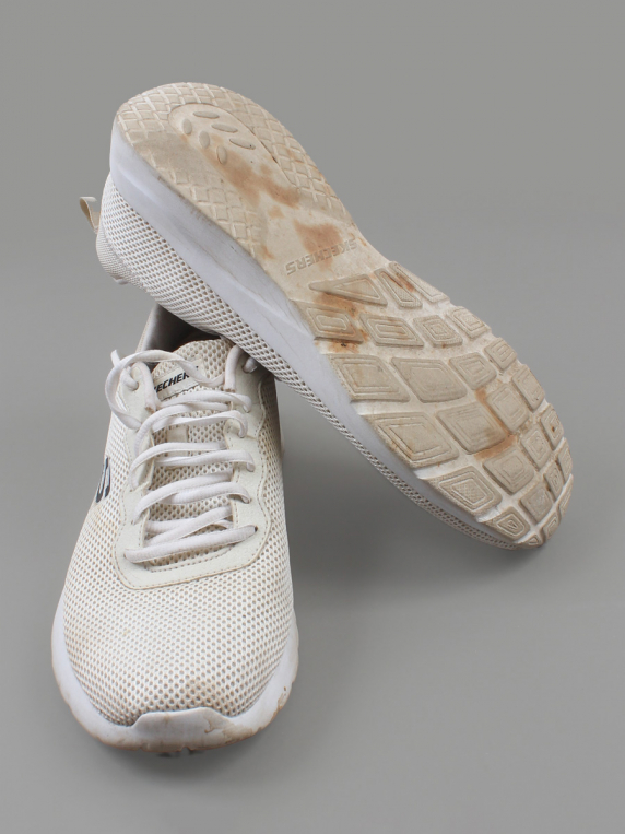 Есть небольшой износ подошвы. Загрязнения.