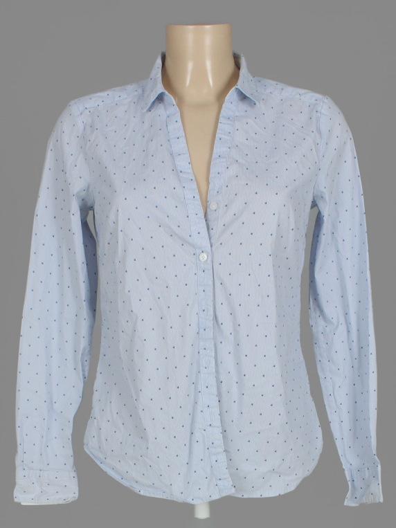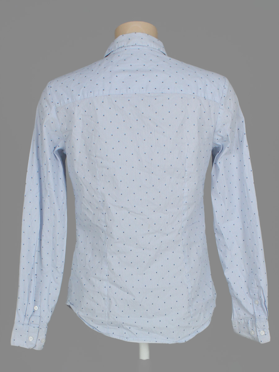 Маркировка EUR 40. Белый-синий. На вороте, манжетах и в области подмышек есть загрязнения.