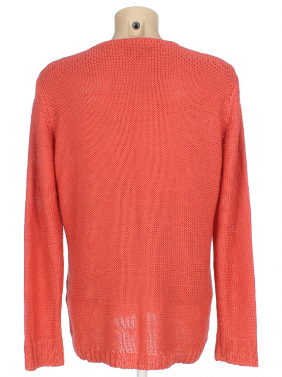 Есть затяжки на внутренней стороне изделия. Катышки снаружи. Цвет коралловый.