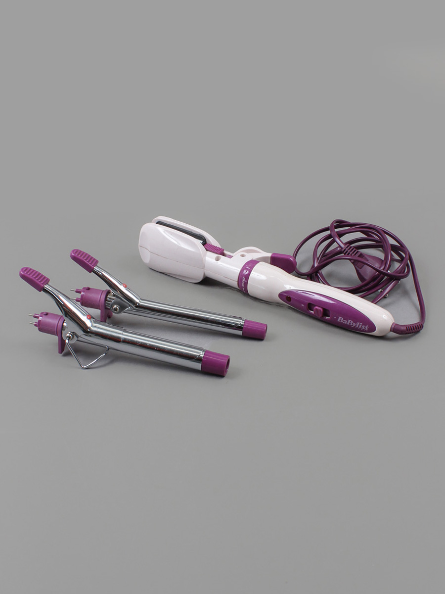 Есть царапинки, трещинки, потёртости и небольшие загрязнения. Частично стёрта краска на принте. В комплекте 3 насадки (утюжок для волос и две плойки). Длина указана с насадкой утюжок.