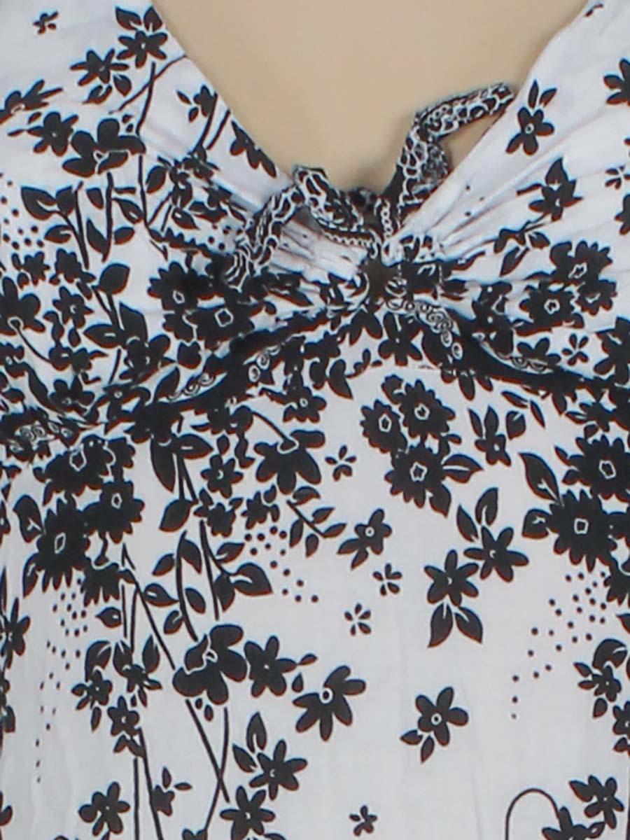 Маркировка на изделии отсутствует. Размер указан на основании замеров (40-42). В области подмышек немного пожелтел материал.