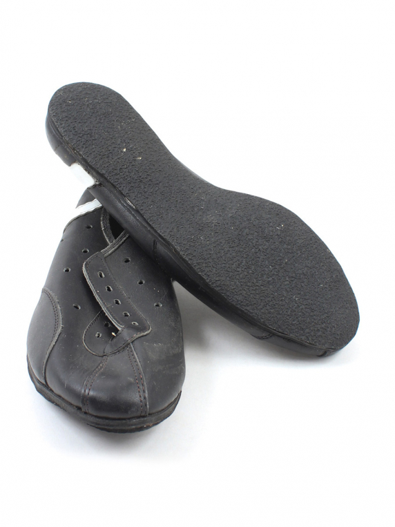 Маркировка на изделии отсутствует. Размер указан на основании замеров. Нет шнурков. Есть поверхностные загрязнения, заломы, небольшие потертости материала.