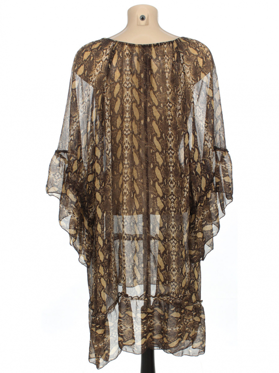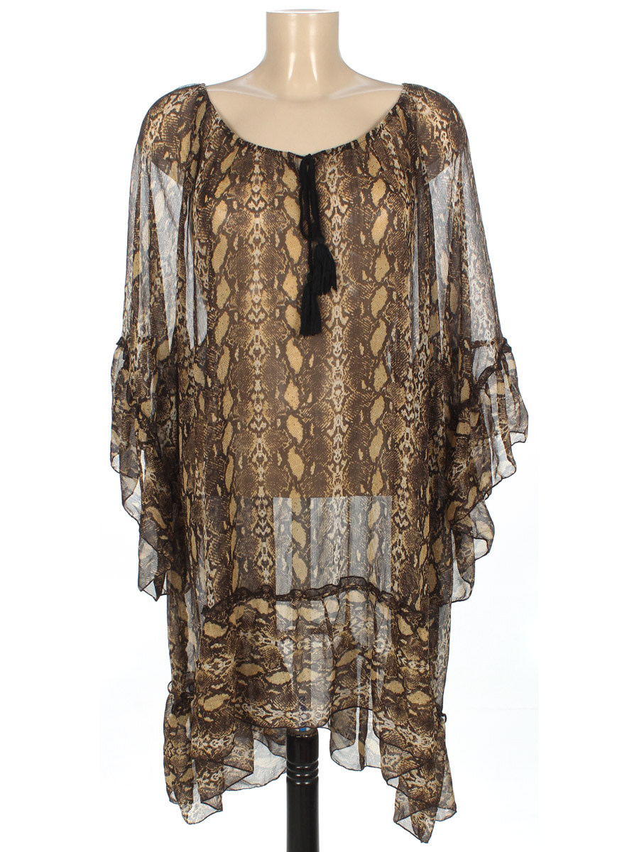 Есть затяжки. Замер рукава произведён от ворота. Изделие свободного кроя. Маркировка на изделии отсутствует. Размер указан предположительно.