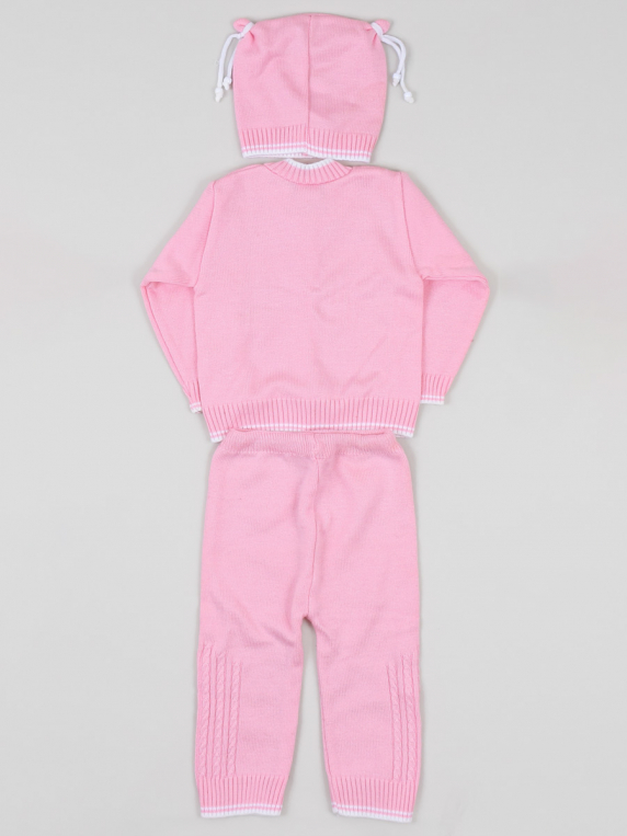 Маркировка на изделии отсутствует. Возраст указан предположительно. На брюках есть катышки. Пятнышки на кофте и брюках.