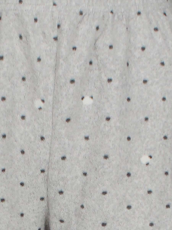 Есть катышки, пятнышки, ткань потускнела, местами вытянулась.