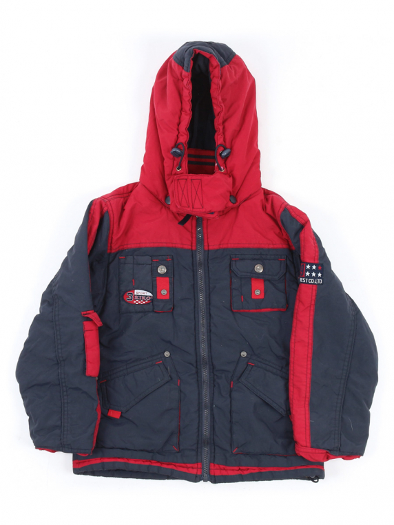 Есть катышки, небольшие загрязнения, ткань потускнела, местами немного лоснится. Стирается краска на бегунке.