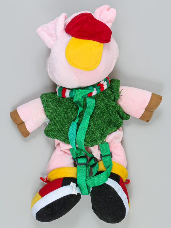 Игрушка-рюкзак. Есть затяжки, стрелки, загрязнения, дырочка по шву, немного скатался ворс.
