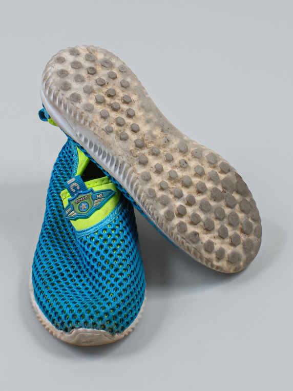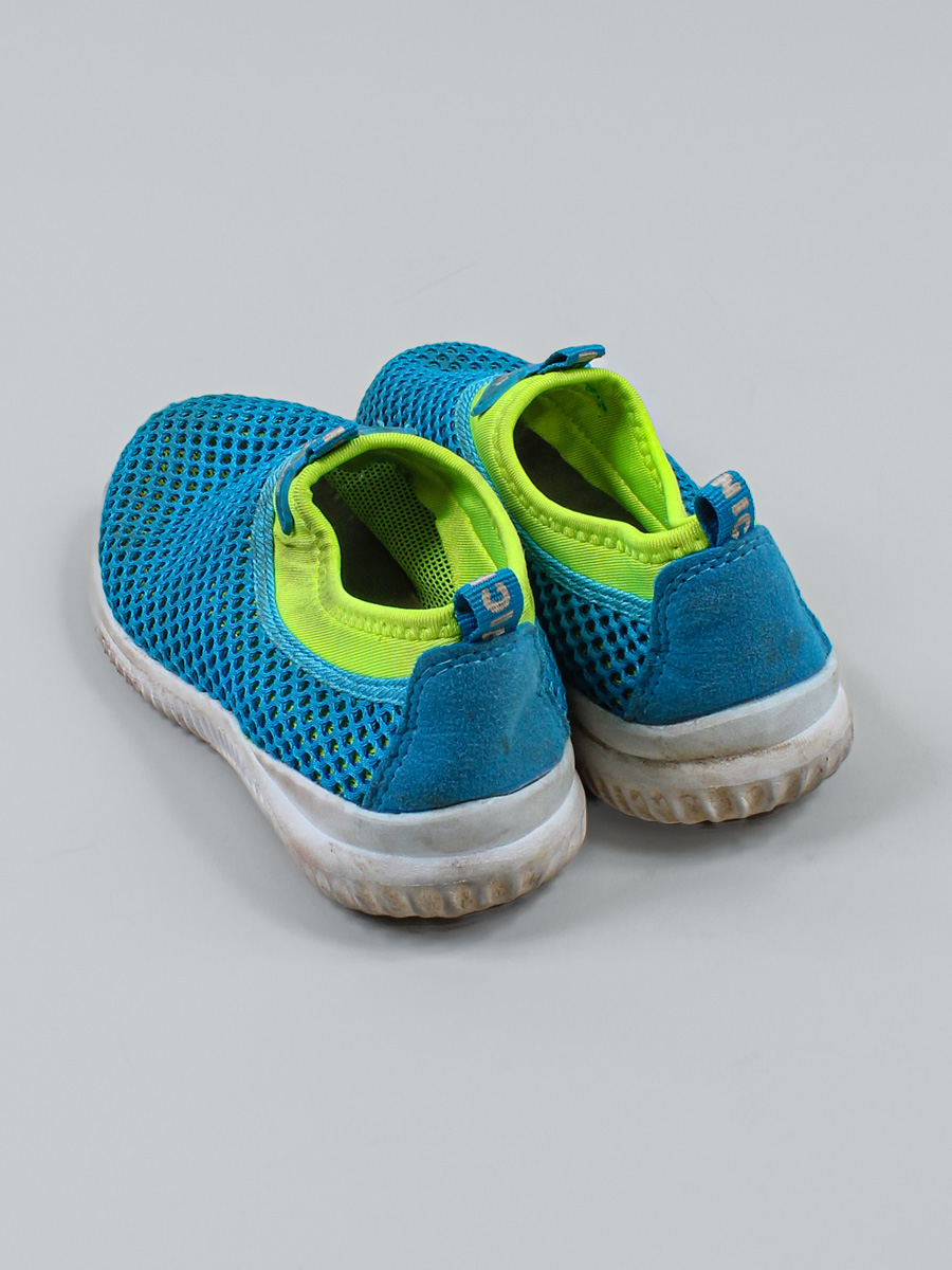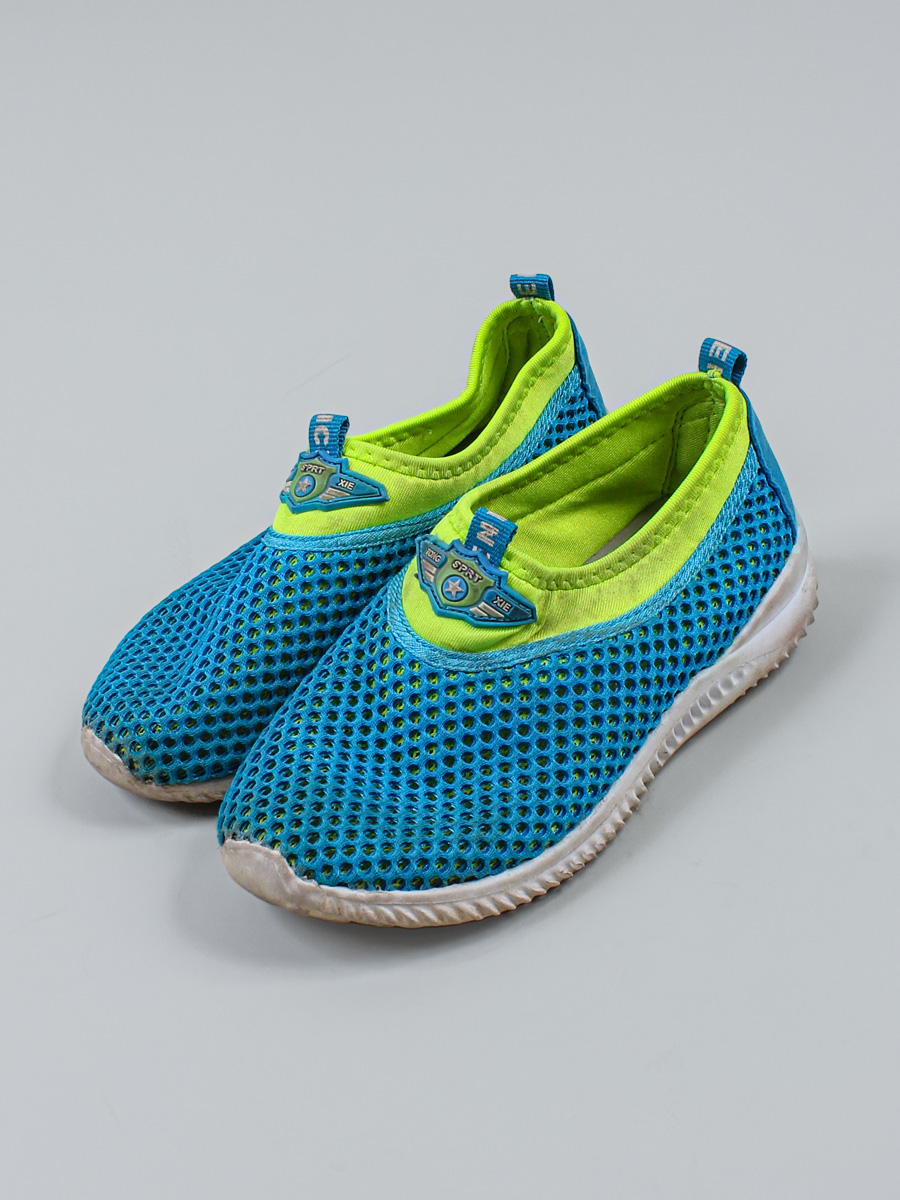 Маркировка на изделии отсутствует. Размер указан на основании замеров. Есть загрязнения, износ подошвы. На носках немного отклеивается материал.