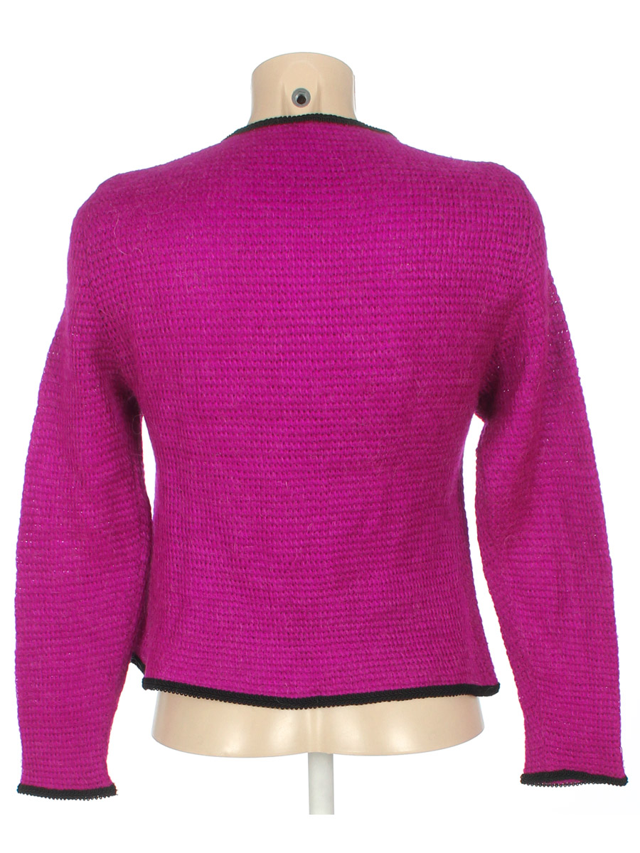 Маркировка на изделии отсутствует. Размер указан на основании замеров (40-42). Розово-сиреневый. Есть катышки, ткань местами вытянулась.