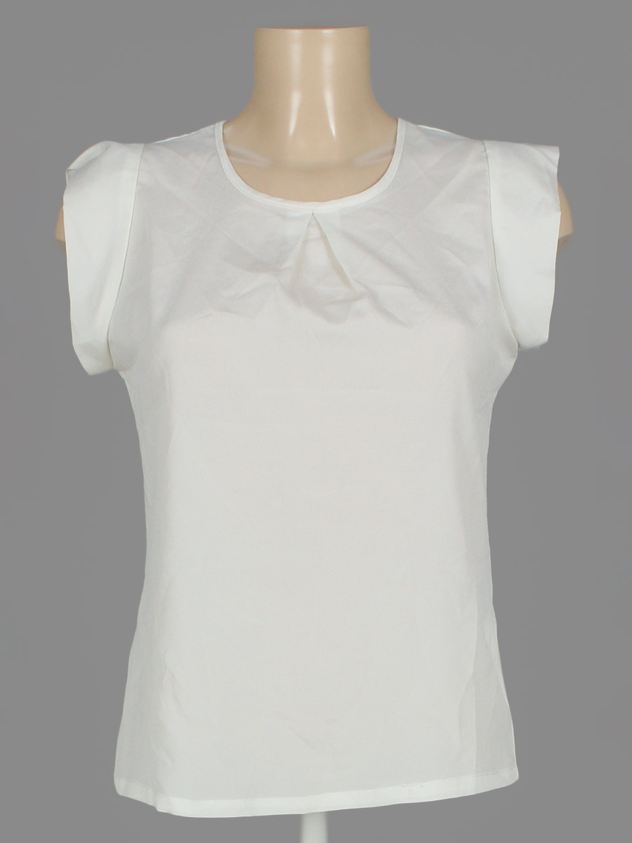 Молочный оттенок. Размер 42-44. В области подмышек небольшие загрязнения.
