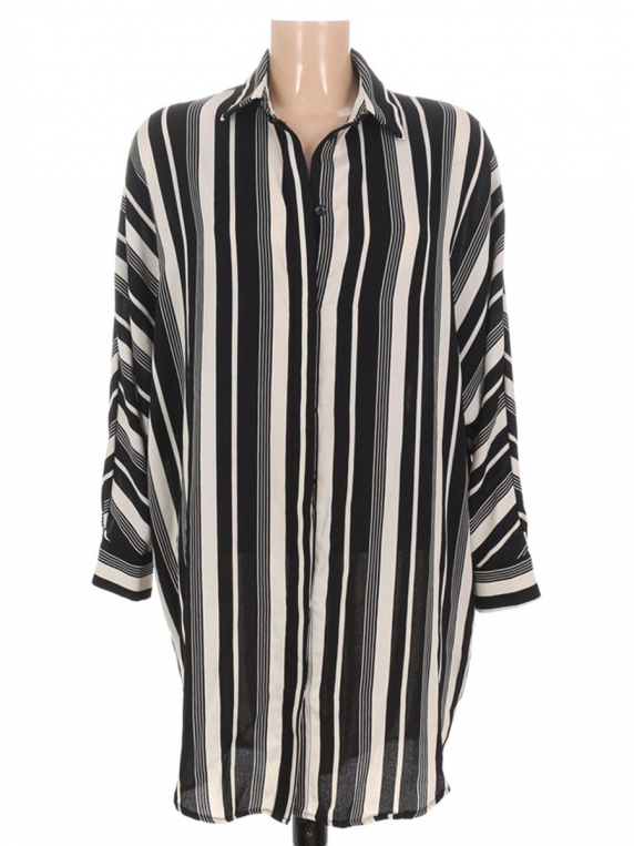 Замер рукава указан от горловины. Есть несколько затяжек, спереди маленькое пятнышко.