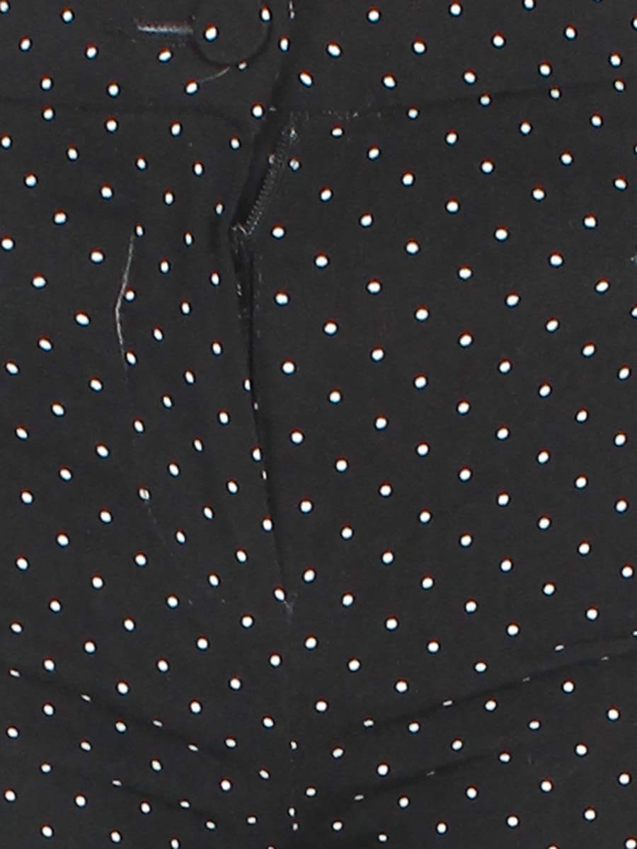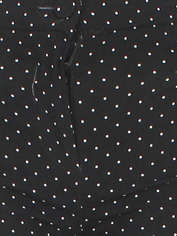 Есть небольшое загрязнение на штанине и маленькие дырочки около декоративных карманов.