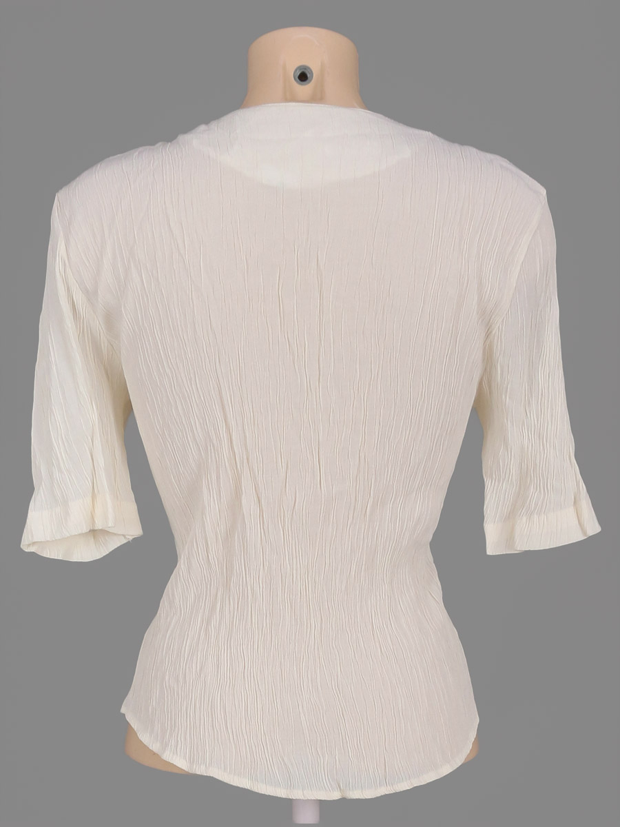 Маркировка на изделии отсутствует. Размер указан на основании замеров. Нарушена фиксация клеевого материала по горловине.