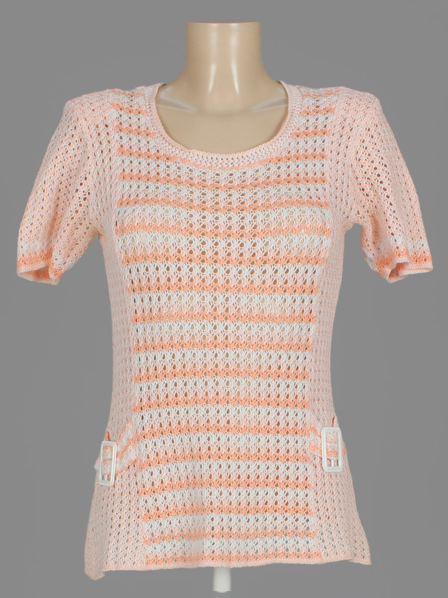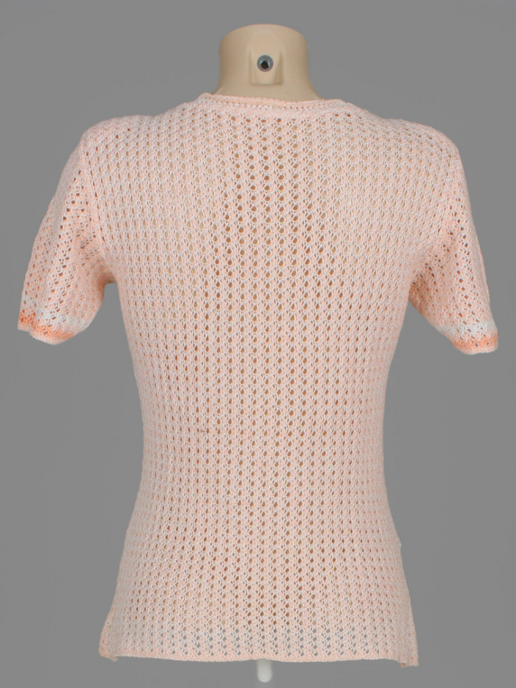 Маркировка на изделии отсутствует. Размер указан на основании замеров (42-44). Ткань немного растянута. Сходит покрытие на декоративных элементах.