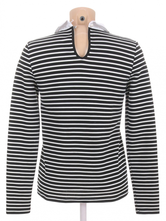 Есть немного катышек. На спине оторвалась петелька. Есть затяжка.