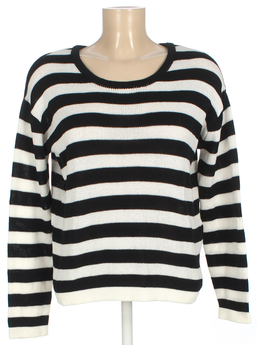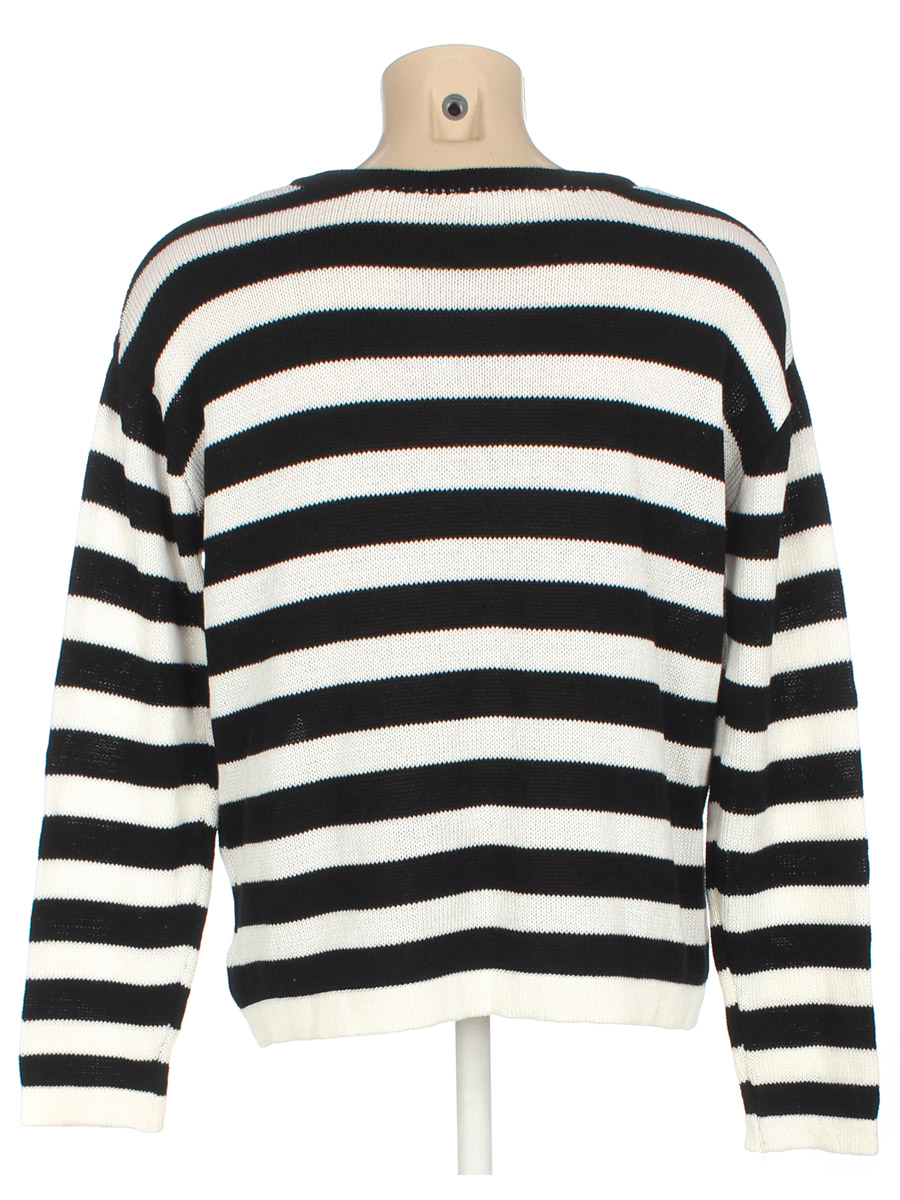 Черно-белый. Свободный крой. Замер рукава указан от горловины. Ткань незначительно вытянулась по швам.