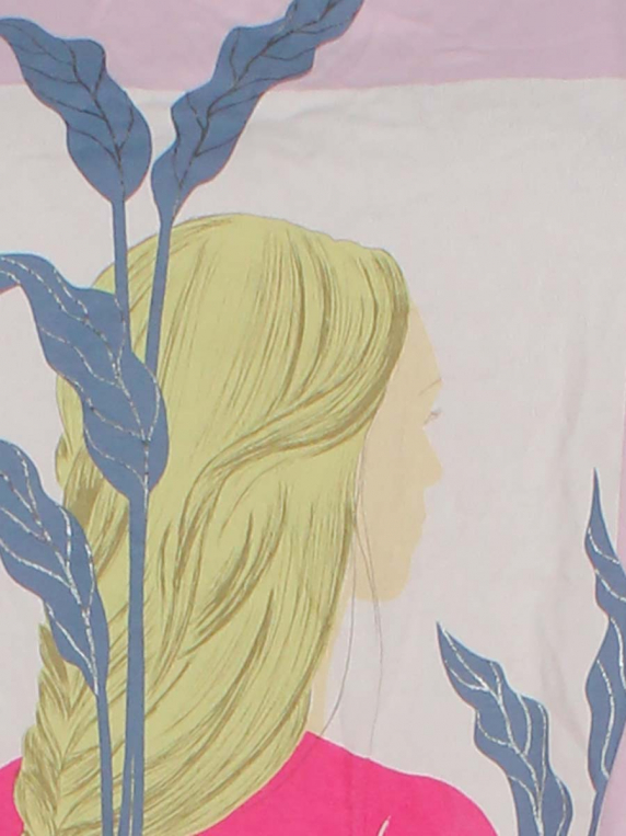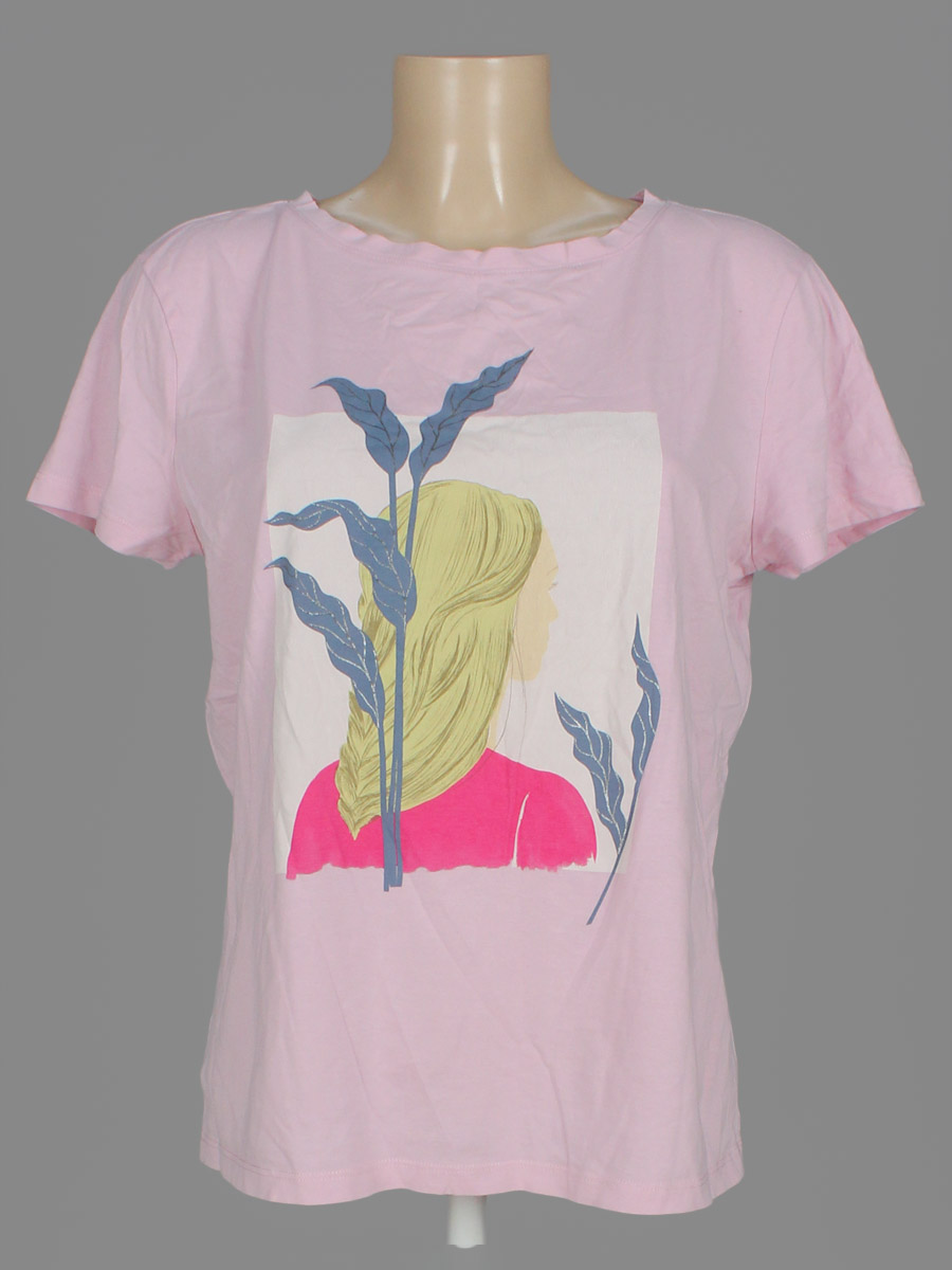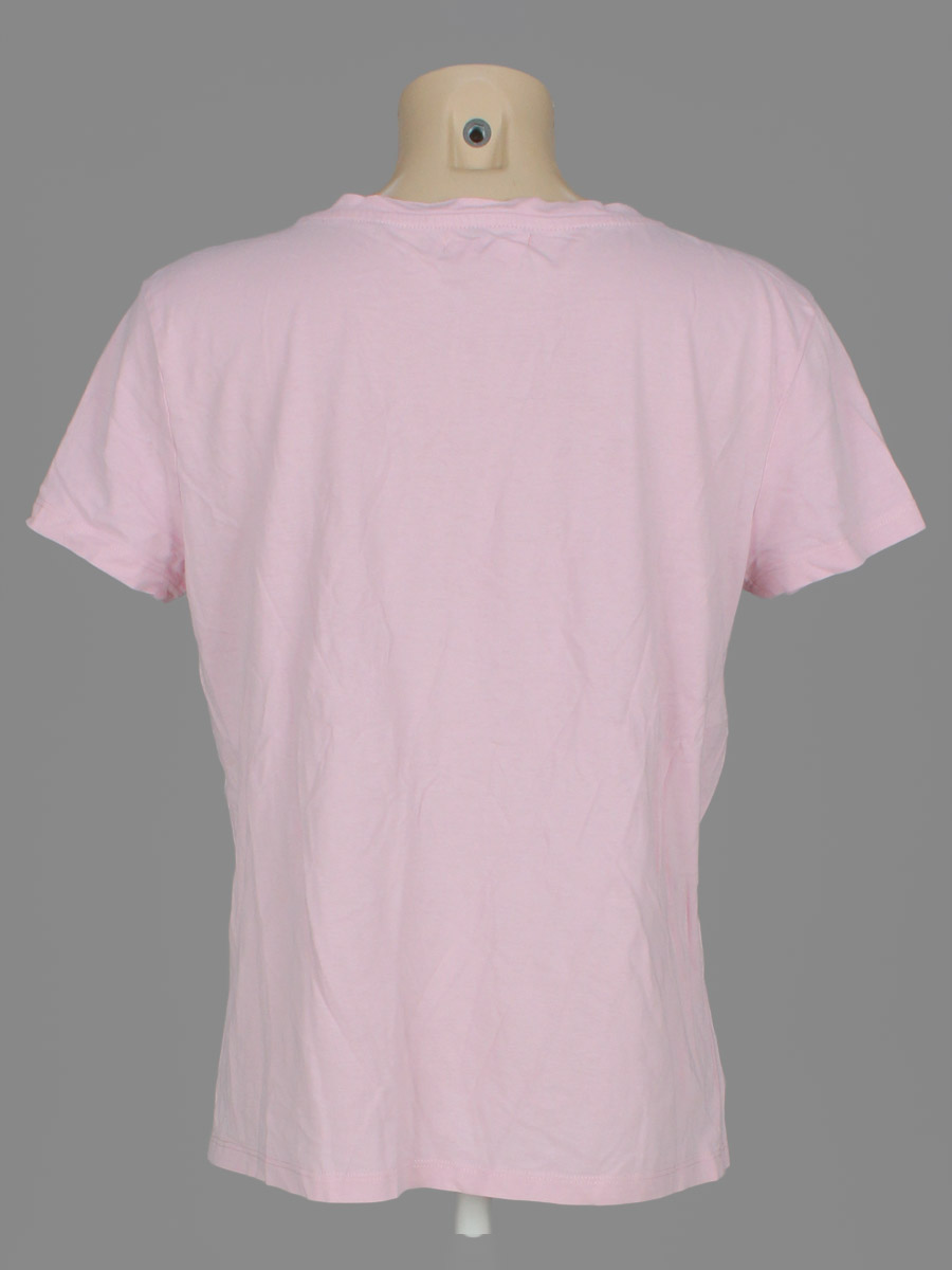 Трекскается краска на принте, ткань незначительно вытянулась по швам.