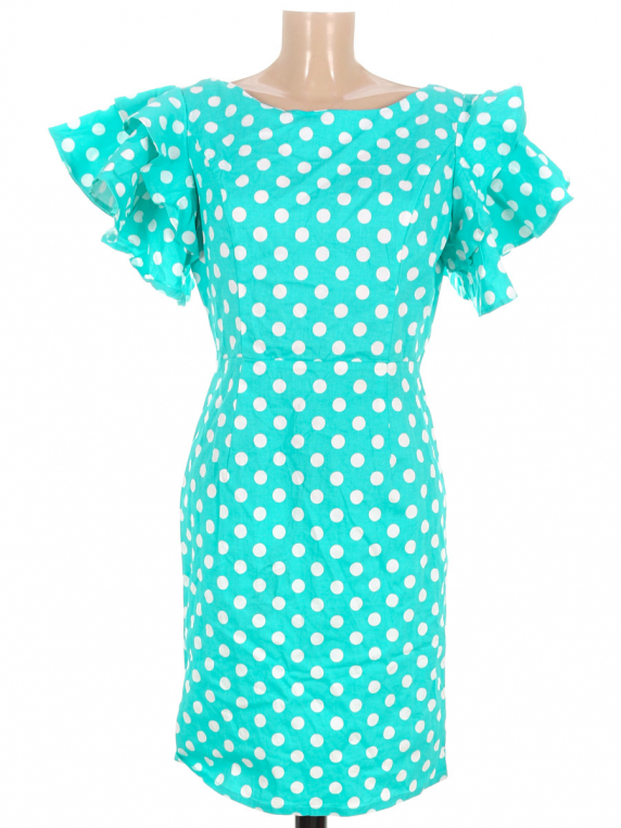 Голубо-зеленый оттенок. Размер 46-48. Без видимых следов носки.