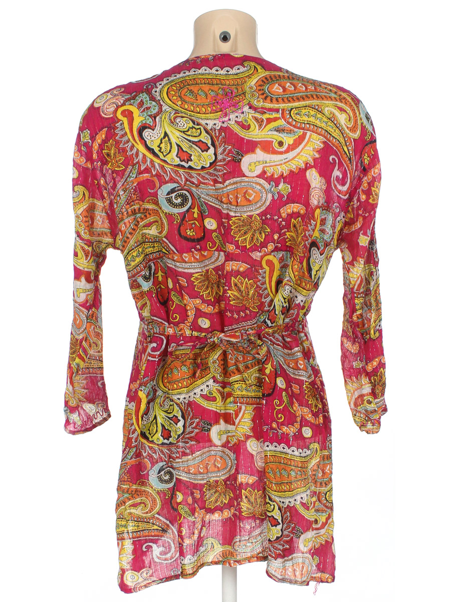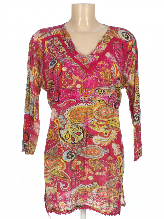 Маркировка на изделии отсутствует. Размер указан на основании замеров. Есть затяжки. Торчат нитки.