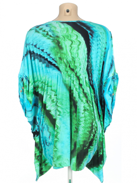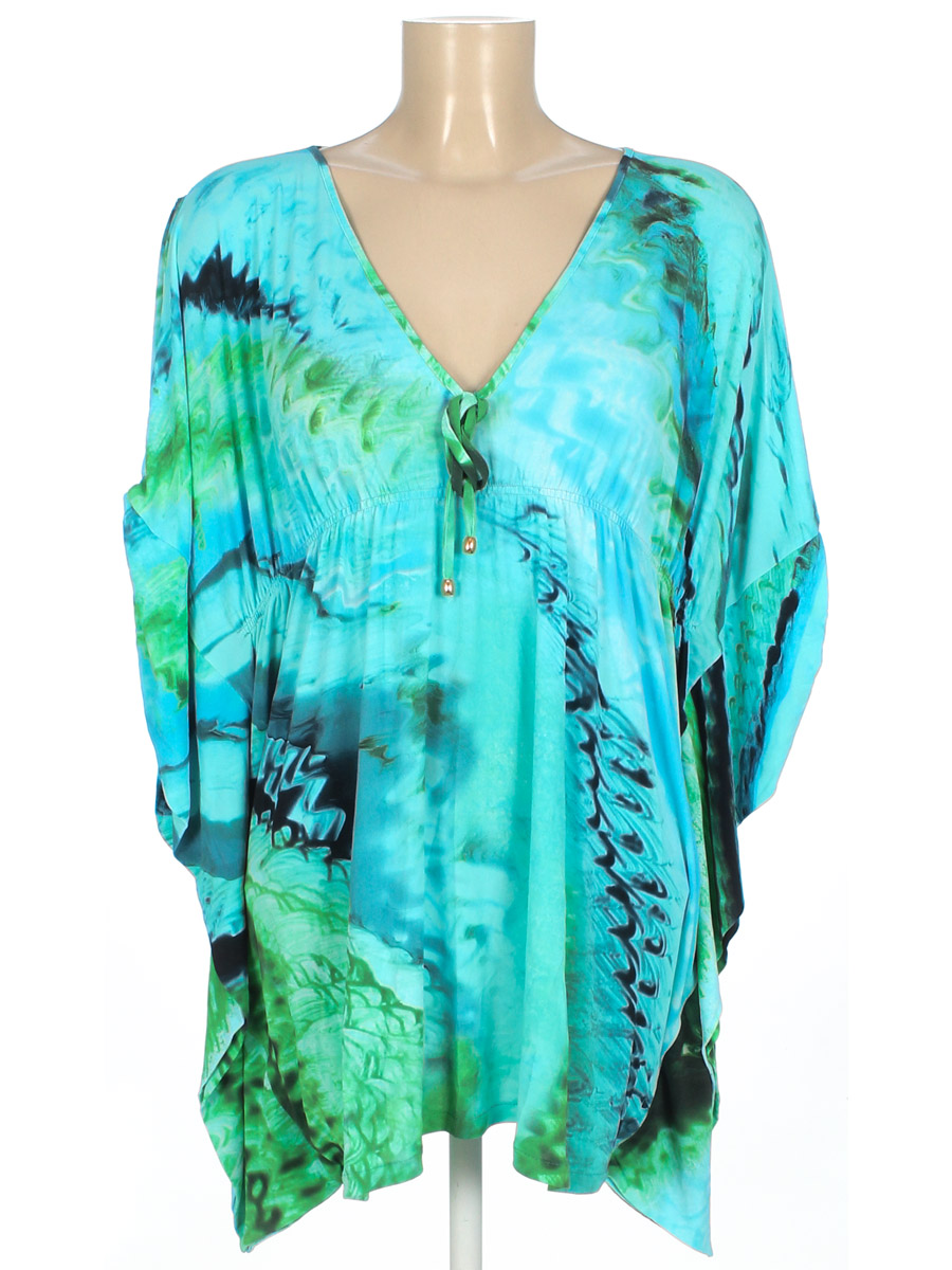 Маркировка на изделии отсутствует. Размер указан предположительно (60-62). Изделие свободного кроя. Есть мелкие затяжки. Есть дырочка по шву на плече.