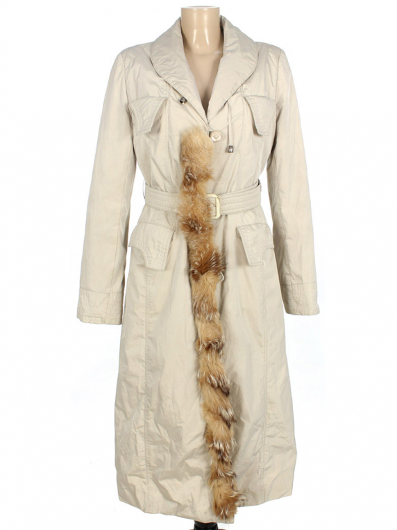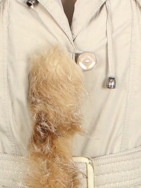 Есть немного затяжек на подкладочной ткани. Опушка съемная. Есть небольшие загрязнения.