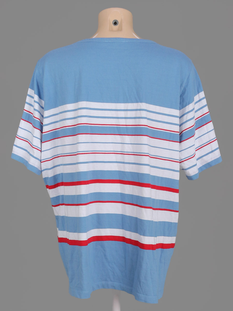 Маркировка на изделии отсутствует. Размер указан на основании замеров. Спереди есть пятнышко, ткань незначительно вытянулась по швам.