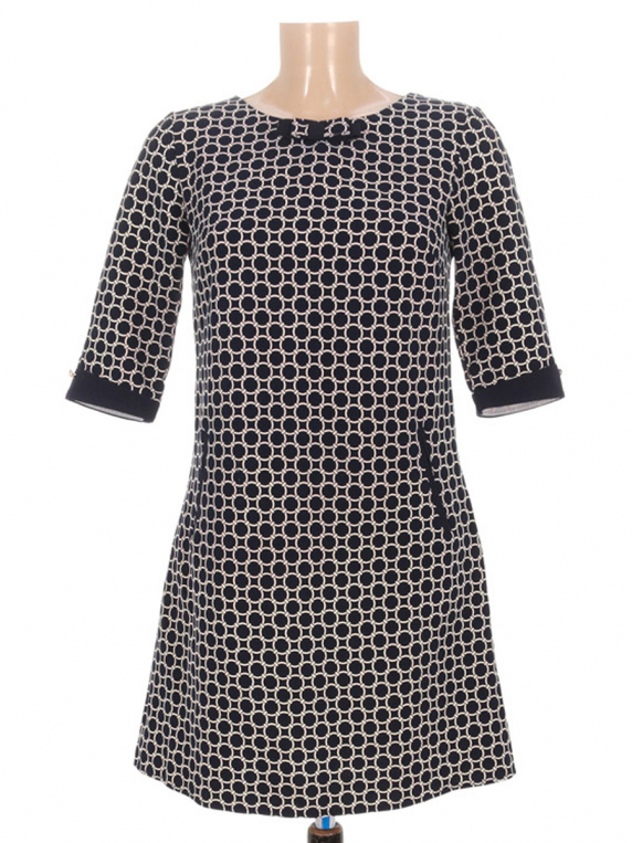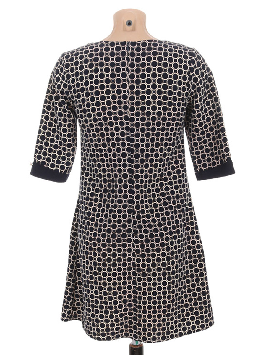 Маркировка на изделии отсутствует. Размер указан на основании замеров (42-44). Спереди есть затяжка, в области подмышки немного распускается строчка по шву.
